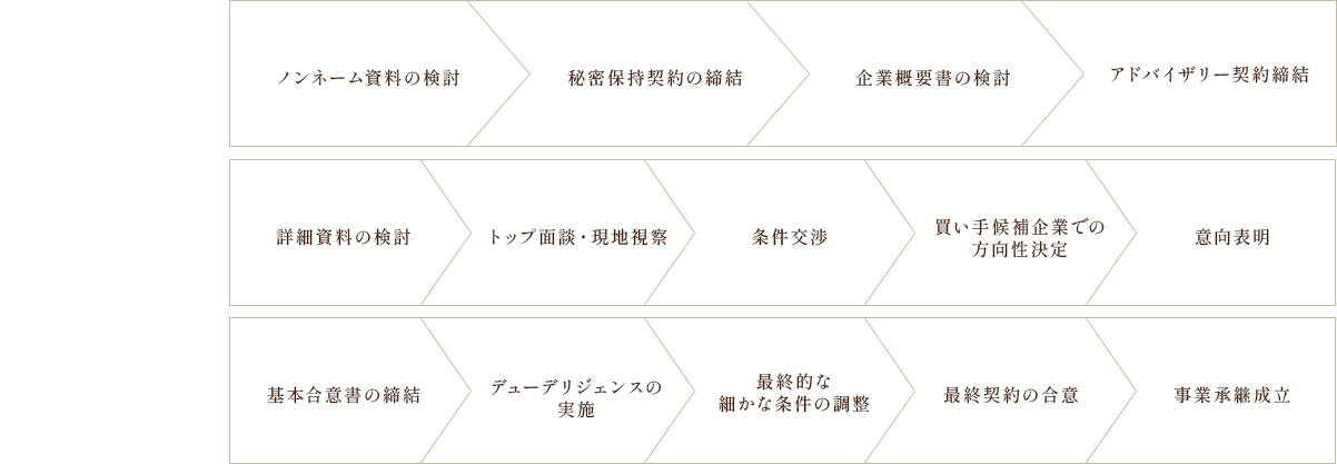 専任のコンサルタントによる譲受企業様の投資対象やご予算をヒヤリングし、ニーズに合致する譲渡企業のご紹介や、詳細情報の提供を行います。
